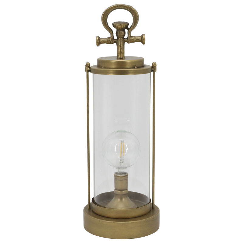 Iögonfallande stallykta från Chic Antique, med en glas lykta och metall i en varm nyans av antikmässing.