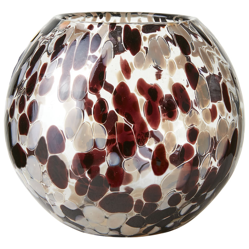 Vacker värmeljushållare i munblåst glas med bruna inslag.