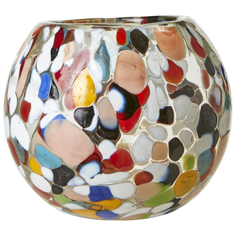 Sätt lite färg på tillvaron och tänd ett ljus i denna snygga värmeljushållare.