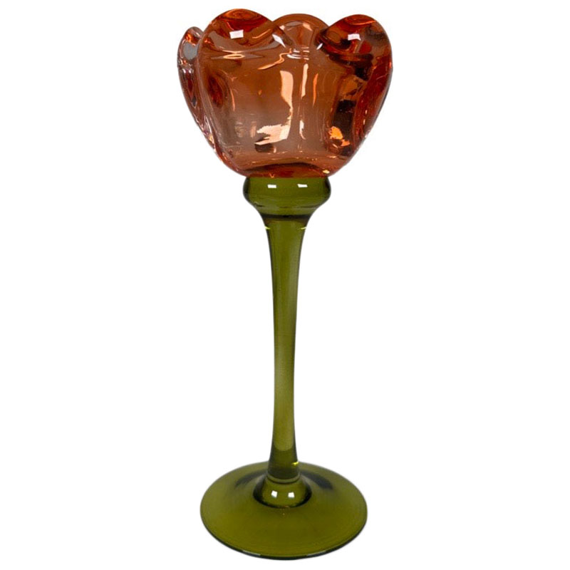 Tjusig ljuslykta från Miljögården, tillverkad i glas med ett vackert motiv av en orange ros.