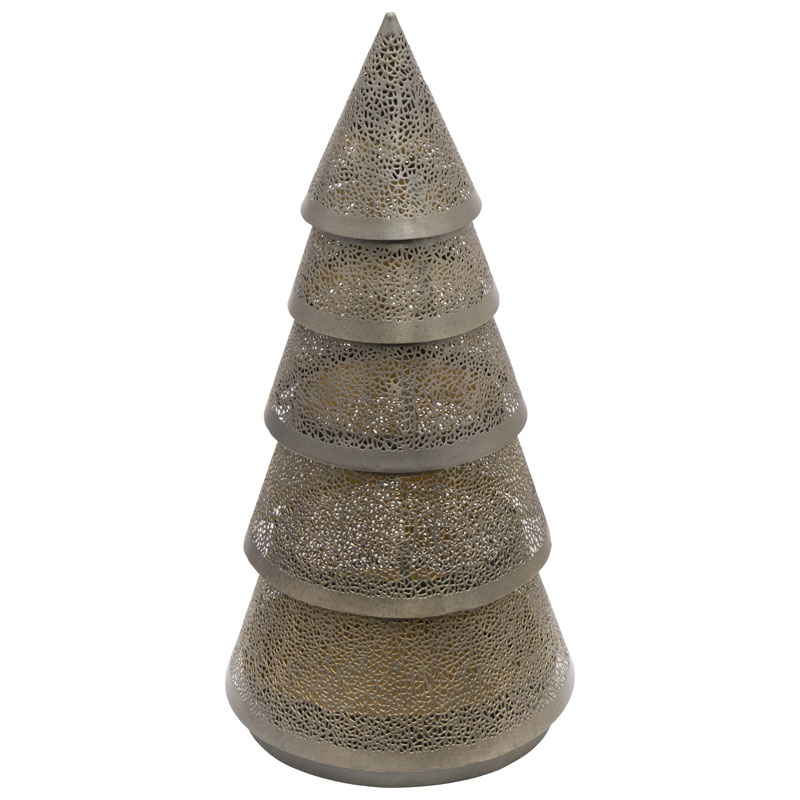 Unik värmeljushållare från Halvor Bakke. Formad som en vacker julgran i en rustik metallic grå färg. Den ger ett mjukt och inbjudande ljus som lyser upp rummet.