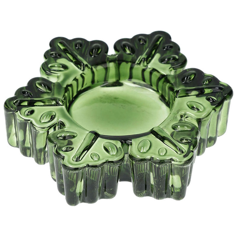 Stämningsfull ljusstake från A Lot Decoration, i form av en snöflinga i grönt glas.