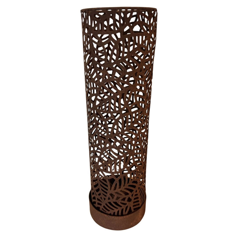 Rostfärgad ljusstake för kronljus från Lind Decoration, med ett lövmönster på utsidan som skapar vackra effekter och skuggor.
