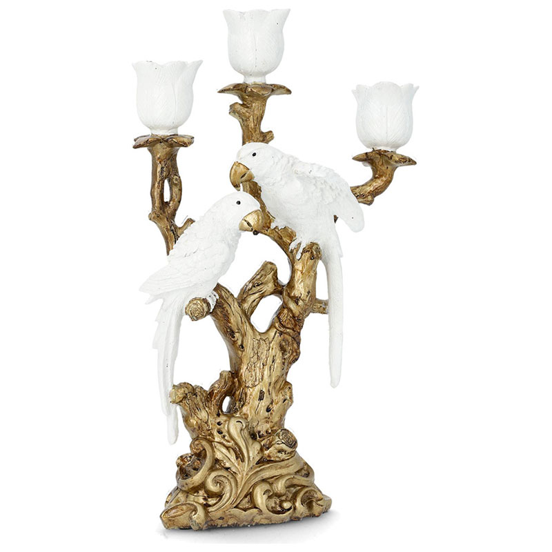 Fåglar På Gren Ljusstake Vit/Guld