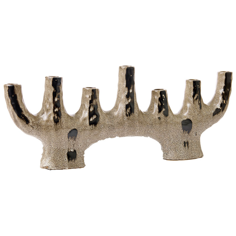 Tulip ljusstake, en tidlös och elegant detalj som kombinerar minimalistisk design med naturlig skönhet från Jakobsdals. med mjukt handmålade ränder i en reaktiv glasyr och en mörkbrun färg utstrålar denna ljusstake en känsla av förfinad hantverksskicklighet.