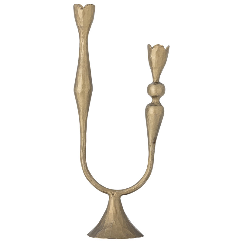 Vesc ljusstaken från Bloomingville har en järndesign med mässingspläterad yta.