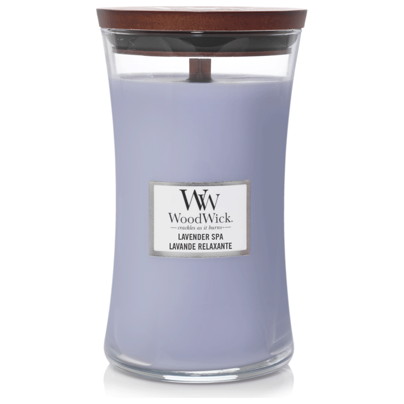WoodWick Lavender Spa skapar en mysig känsla och härlig atmosfär. Återskapa en dag på spa med de avslappnande dofterna av specialblandande eteriska oljor av lavendel och eukalyptus.