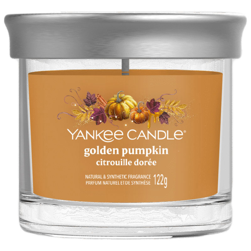 Doftljus i tumbler från klassiska Yankee Candle® Signature med doften "Golden Pumpkin" - en härlig och höstig doft. Bada i aromer av ingefära, varm kanel och söt karamell med inslag av mogen pumpa.