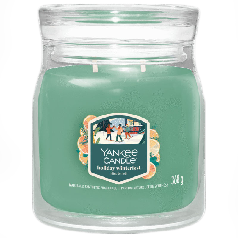 Doftljus från klassiska Yankee Candle® Signature med doften "Holiday Winterfest" - Fyll hemmet med dofter av mousserande citrus, färska örter och granbarr och fira in semestern ordentligt.