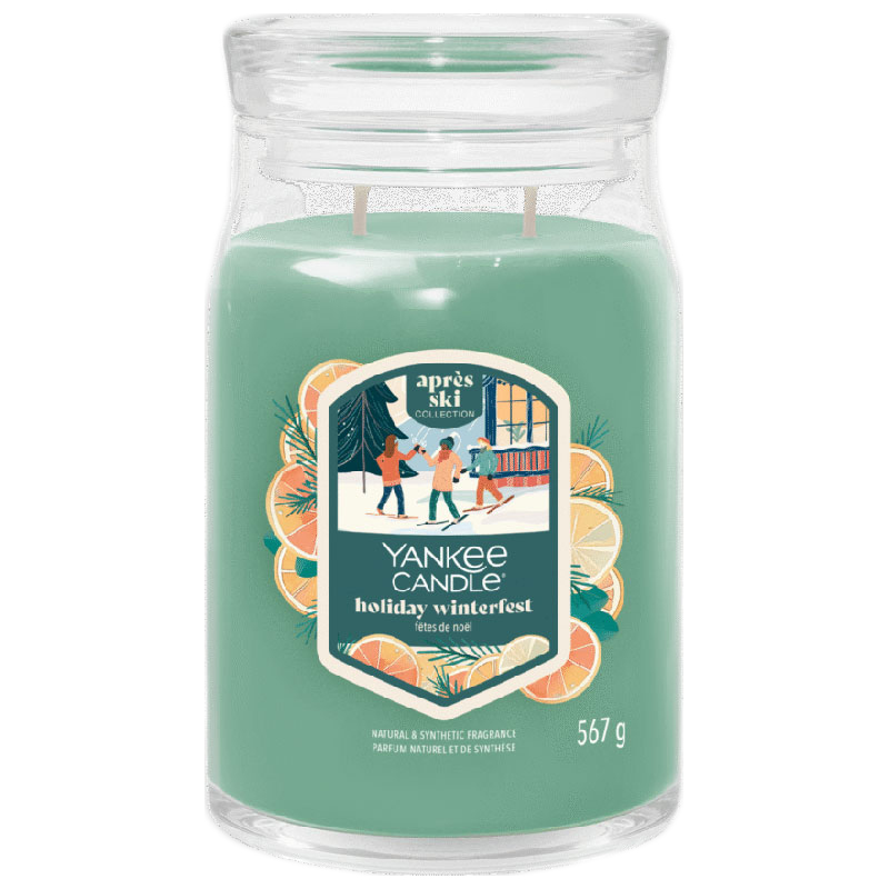 Doftljus från klassiska Yankee Candle® Signature med doften "Holiday Winterfest" - Fyll hemmet med dofter av mousserande citrus, färska örter och granbarr och fira in semestern ordentligt.