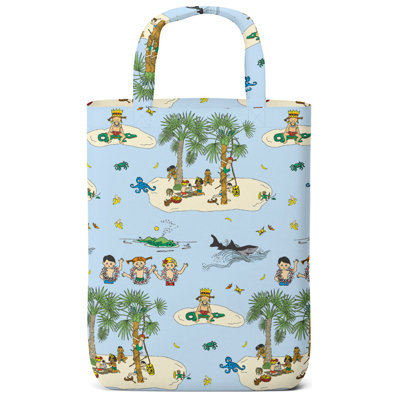 Underbar tygkasse från Arvidssons Textil med motiv av Pippi, Tommy och Annika på äventyr vid Kurrekurreduttön.