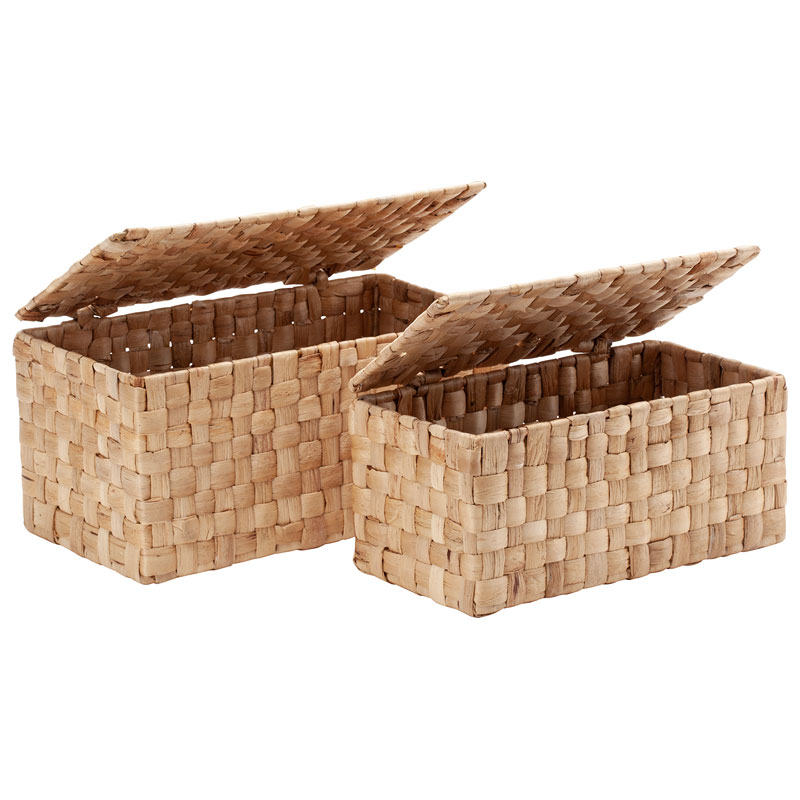 Box med lock Lily Panama från Dixie är ett set med två handflätade förvaringslådor i vattenslinga runt en stabil stålram.