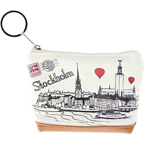 Praktisk nyckelring med en börs i Canvas från Nordic Souvenir. Med en tecknad illustration av Stockholm.