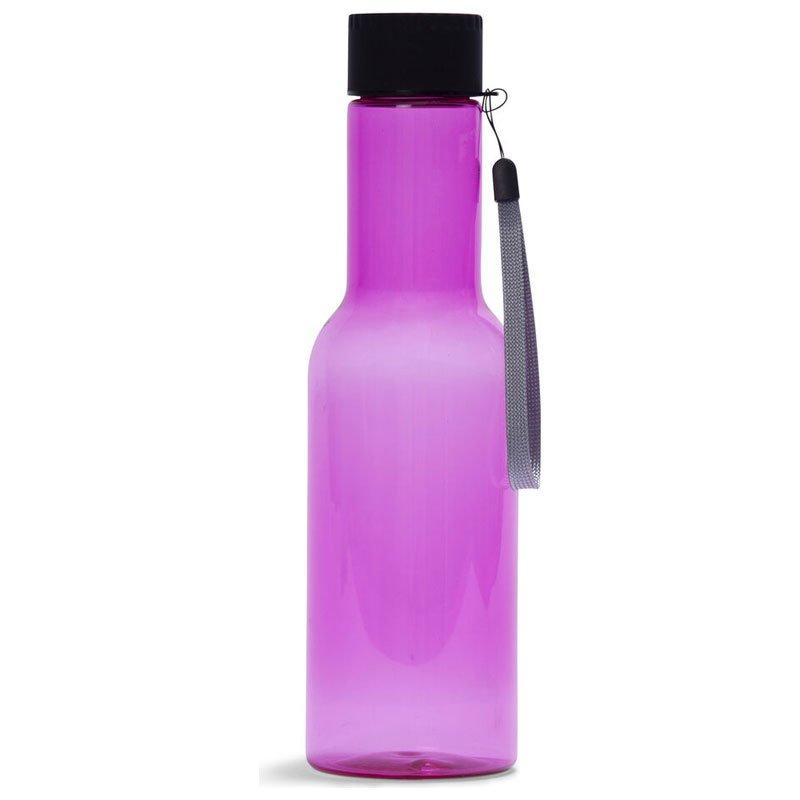 Det praktiska locket med handledsrem gör flaskan enkel att ta med i väskan, på promenaden eller till träningen.