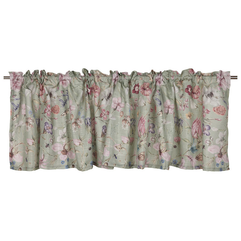 Alma är en vacker gardinkappa från Fondaco, prydd av ett livligt blommönster mot en grön botten.