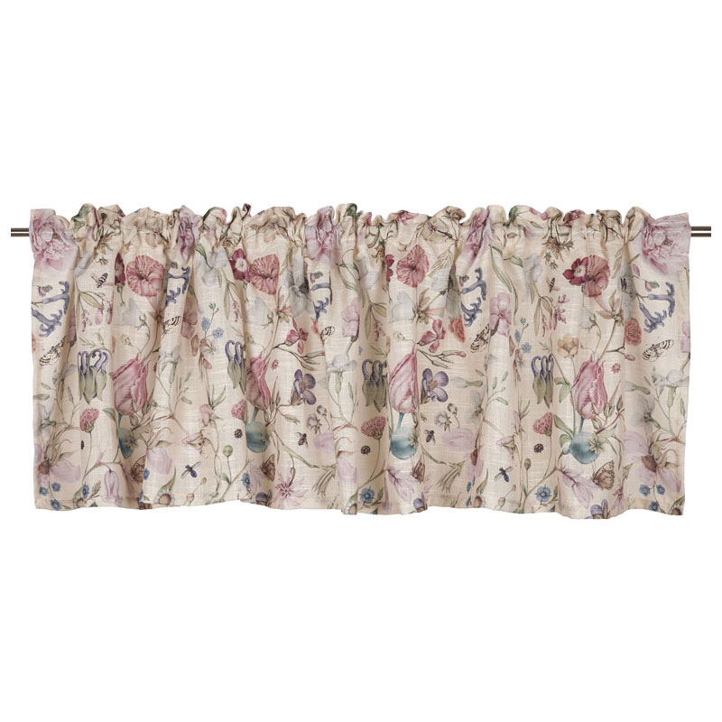Alma är en vacker gardinkappa från Fondaco, prydd av ett livligt blommönster mot en gul botten.
