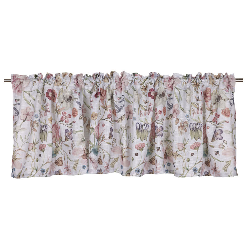 Alma är en vacker gardinkappa från Fondaco, prydd av ett livligt blommönster mot en ljusblå botten.
