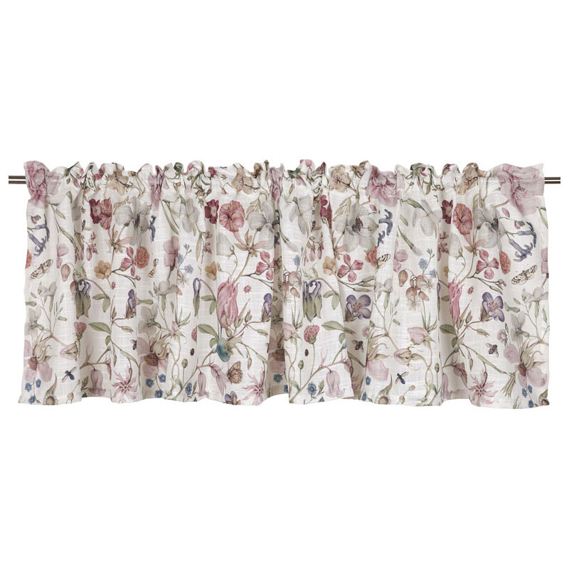 Alma är en vacker gardinkappa från Fondaco, prydd av ett livligt blommönster mot en offwhite botten.