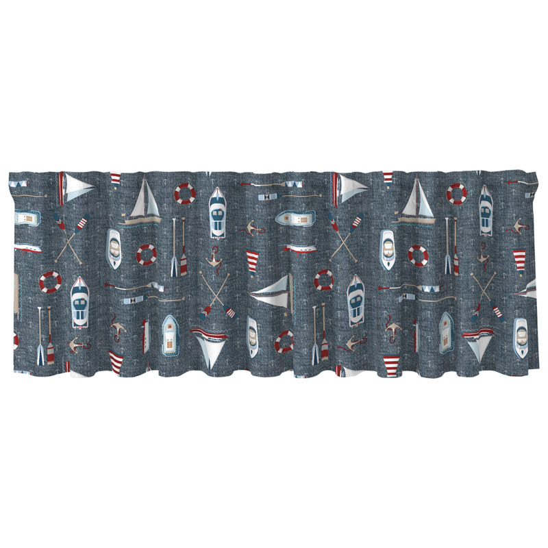 Dalarö är en snygg gardinkappa på metervara från Redlund, fylld av marina motiv som ger ditt hem en fräsch, havsnära stil året runt.
