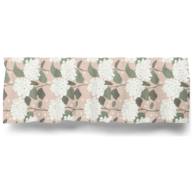 Dess härliga mönster av vita hortensior mot en rosa botten, bidrar till ett naturnära intryck som sprider sig i hemmet.
