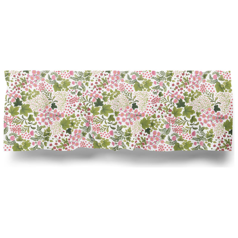 Mormors Täppa från Arvidssons Textil härlig gardinkappa med blommigt mönster som för tankarna till Cottage Garden.