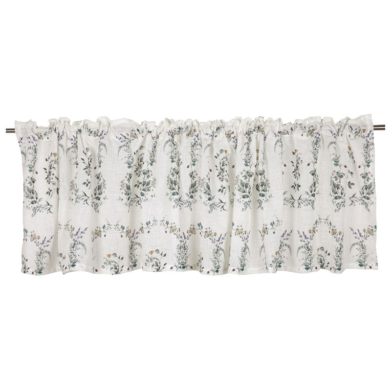 Smultron från Fondaco, skir gardinkappa med ett sött mönster av blommor och bär på en offwhite bakgrund.