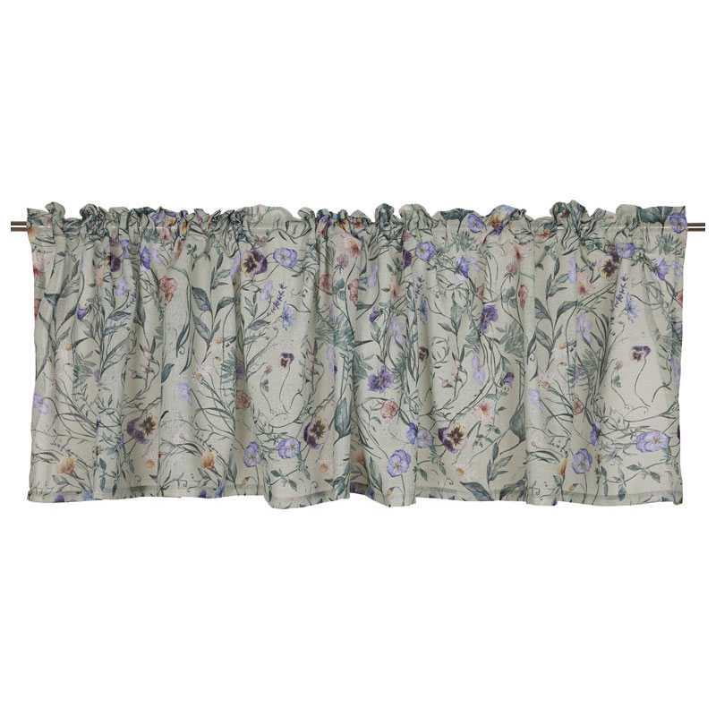 Viola från Fondaco, skir gardinkappa med ett ljuvligt, blommigt mönster på en ljusgrön bakgrund.