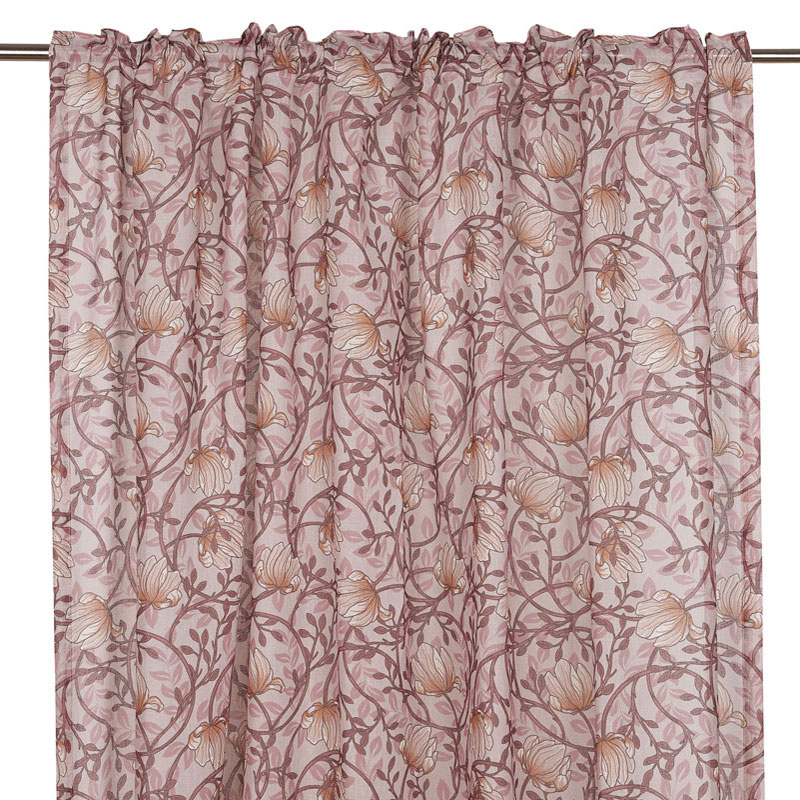 Emma är en härligt skri gardin från Fondaco, prydd av ett slingrande blommönster mot en rosa botten.