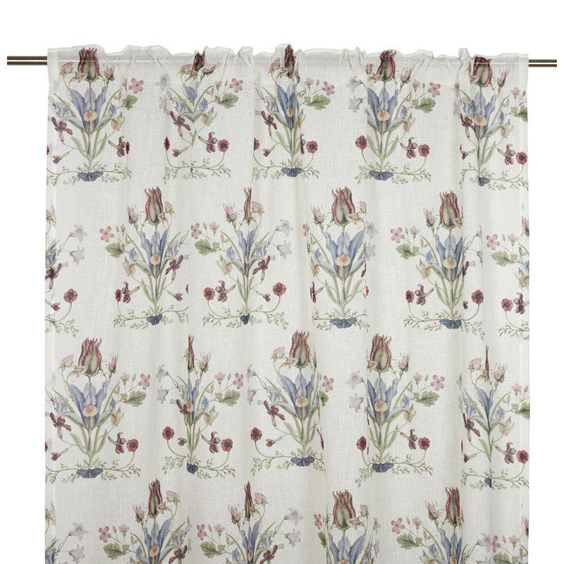 Vendela från Fondaco, skira gardinlängder med ett romantiskt, blommigt mönster på en offwhite bakgrund.