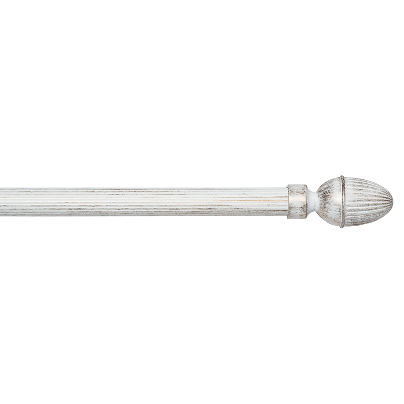 Denna ändknopp har en elegant och klassisk form med räfflad struktur och en lätt patinerad vit finish som ger ett lantligt och tidlöst uttryck.