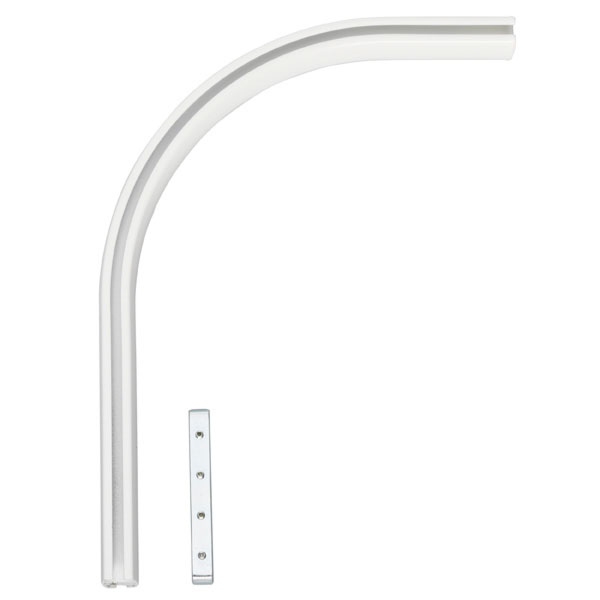 Böjen passar när du vill komma runt hörn eller burspråk. Är ett passande komplement till Flexi-skenan. Hjälp upp skenan vid skarven med extra hållare så skenan håller sig stabil.