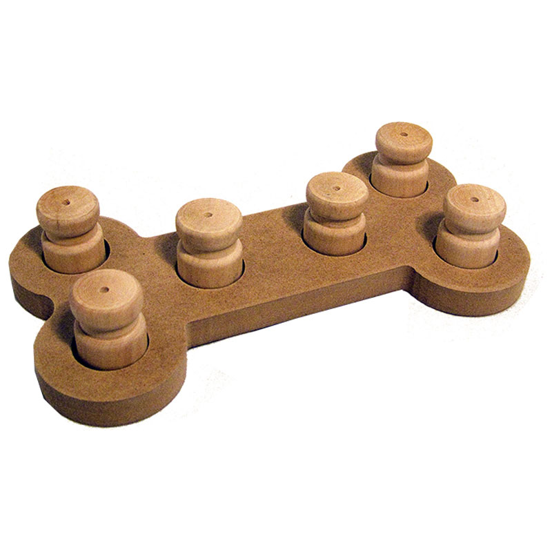 Rolig aktiveringsleksak formad som ett ben för hunden. Göm godis under klossarna och låt hunden lyfta, puffa eller nosa fram godbitarna.