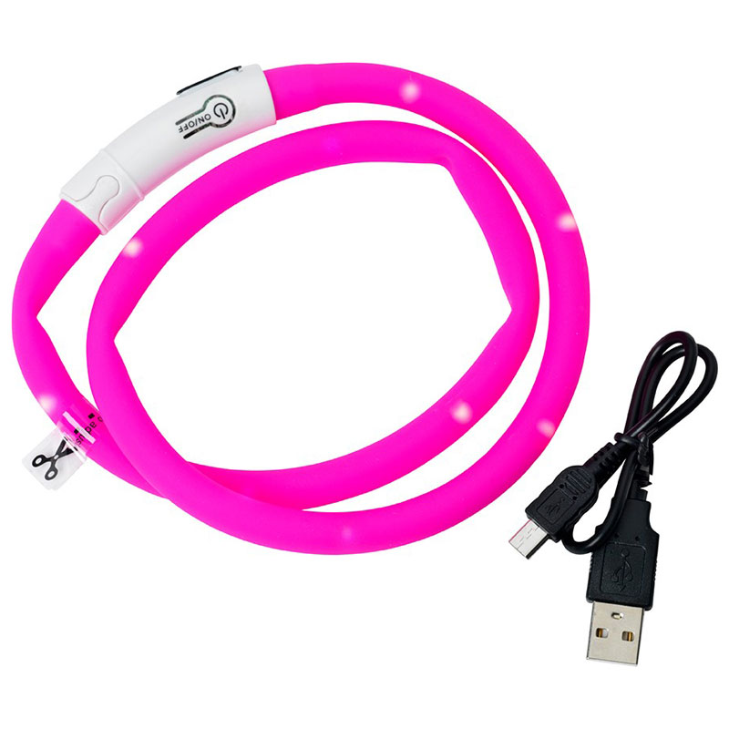 Halsbandet är uppladdningsbart via USB-kabel (sladd medföljer), Kan kortas på längden så att den passar din hund.