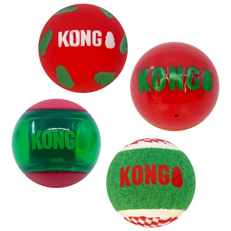 Vill du och din bästa vän ha en aktiv jul? Då skall du köpa dessa bollar. KONG Holiday Occasions bollar från Dogman bjuder på fyra festliga versioner av våra Signature Balls, var och en med en unik textur som ger varierad, högflygande lekglädje.