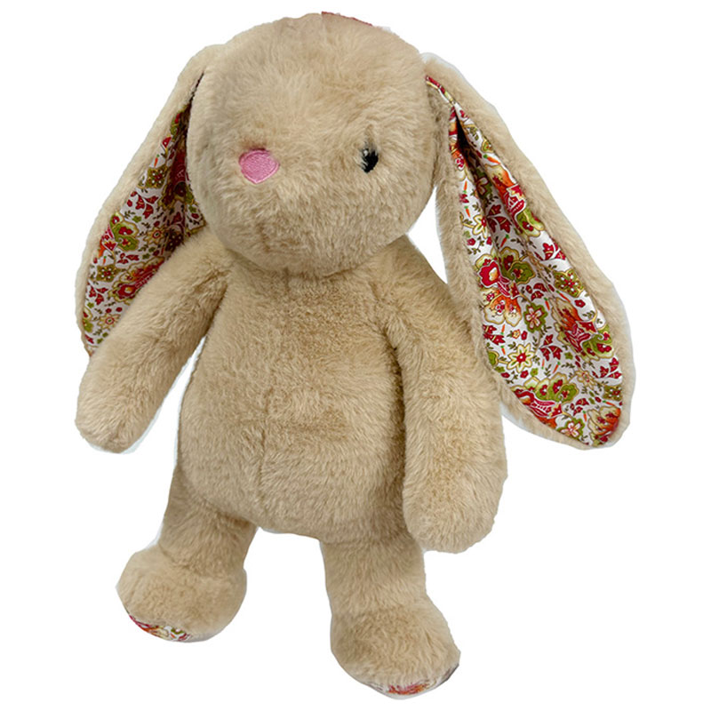 Insidan av öronen och baktassarnas trampdynor är täckta med ett snyggt, blommigt tyg.