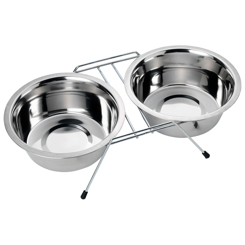 Klassisk matbar med två skålar i låg modell från Dogman. Skålarna är lätta att rengöra och tål att diskas i diskmaskin.