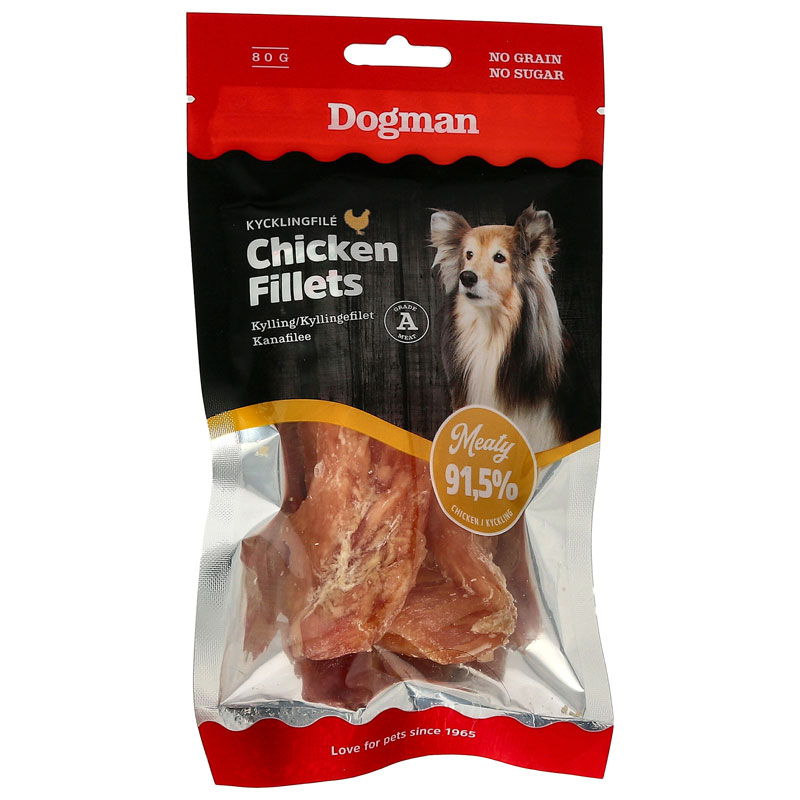Oemotståndligt hundgodis gjort av enbart delikat kycklingkött.