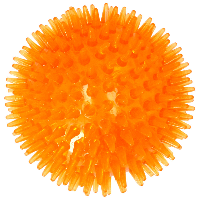 Den här roliga silikonbollen med piggar och pipljud bjuder in till lekfull aktivering och massor av skoj. När hunden biter, bär eller jagar bollen stimuleras leklusten av det lockande pipljudet samtidigt som de mjuka piggarna hjälper till att rengöra tänderna och massera tandköttet under leken.