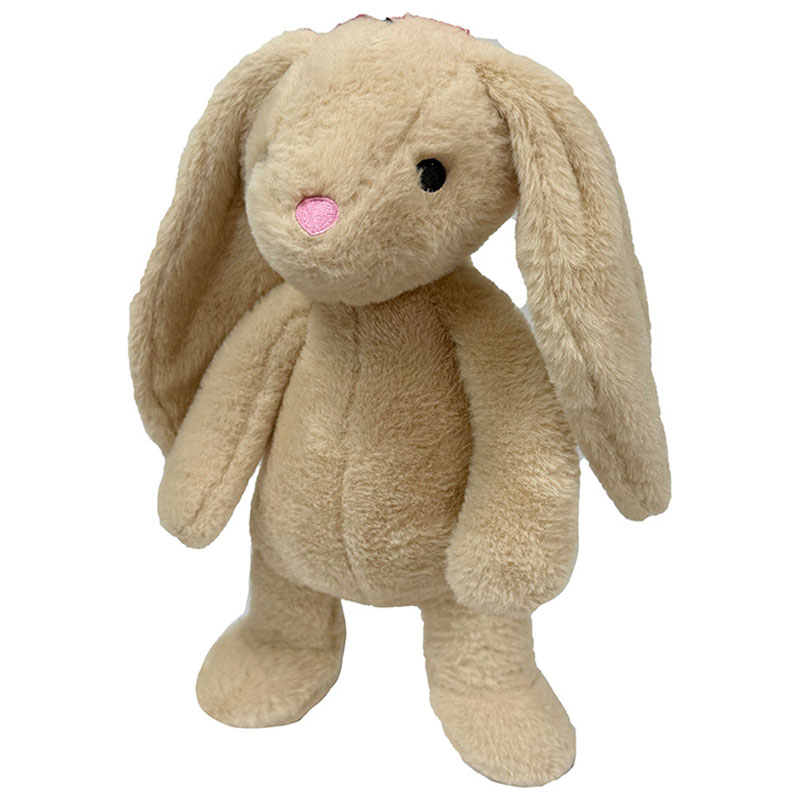 Mjuk hundleksak i form av en kanin i polyester. Kaninen har prassel i öronen, en squeeker som ger ifrån sig ett grymtande ljud i magen och pipljud i baktassarna, vilket ger varierande stimulans och långvarig lekglädje.