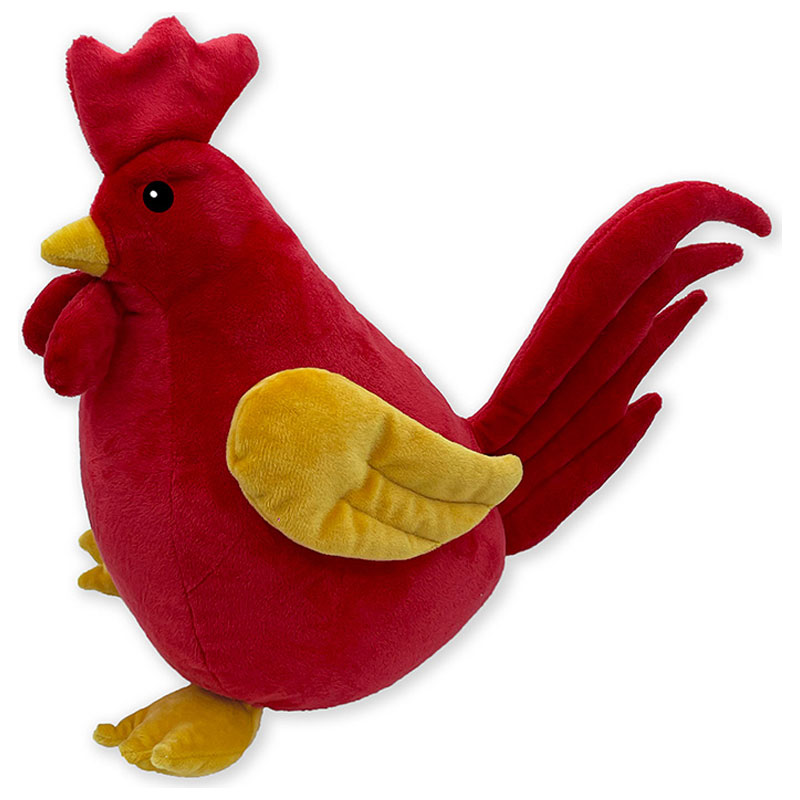 Mjuk hundleksak i form av en tupp i polyester, med prassel i vingarna och den röda kammen, och en inbyggd tuta i kroppen, perfekt för att väcka hundens nyfikenhet och hålla leken igång.