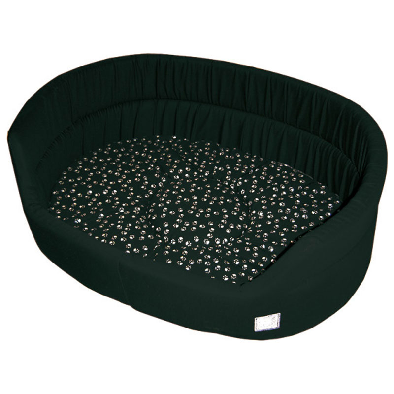 Svart hundbädd med motiv av silvertassar från Danish Design.
