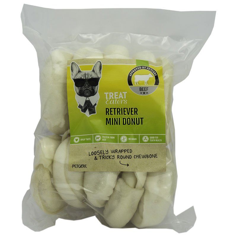 Små men kraftiga tuggringar från Treateaters med kokt råhud som är extra snäll mot magen. Den runda formen ger hunden extra stimulans.