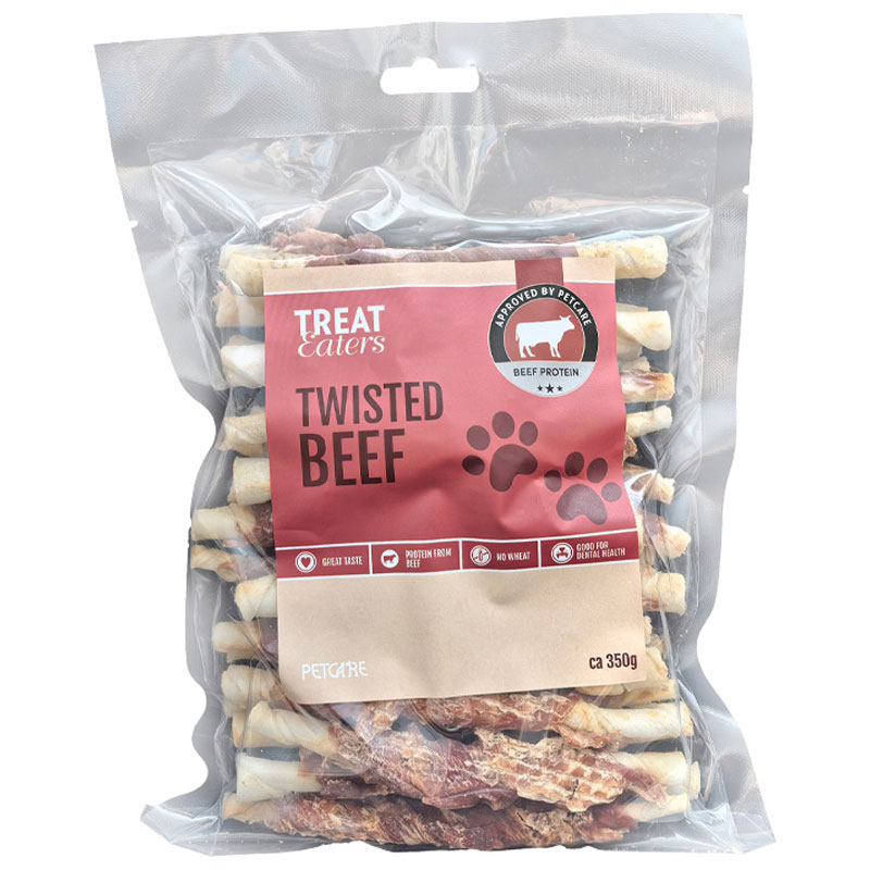 Twisted Beef är ett smakrikt tugg för hundar, tillverkat av naturliga ingredienser för en ren och god tuggupplevelse.