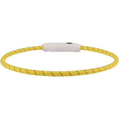 Halsbandet är uppladdningsbart via USB-kabel, klätt med nylon och är vattentåligt.