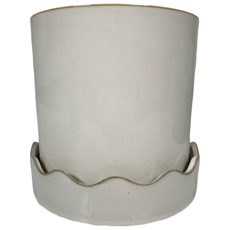 Snygg stilren kruka med glaserad yta och fat med trendig vågig kant.