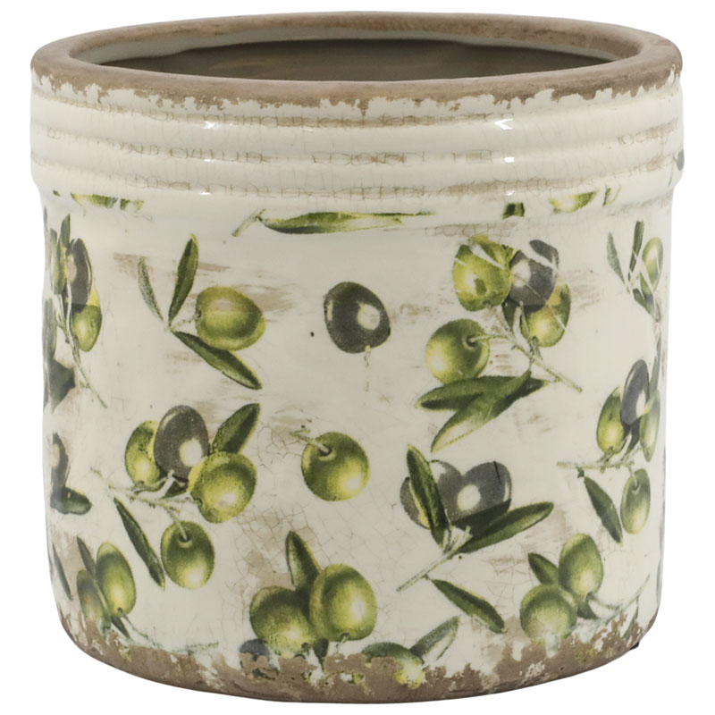 Snygg kruka med patina och mönster av oliver från Chic Antique.