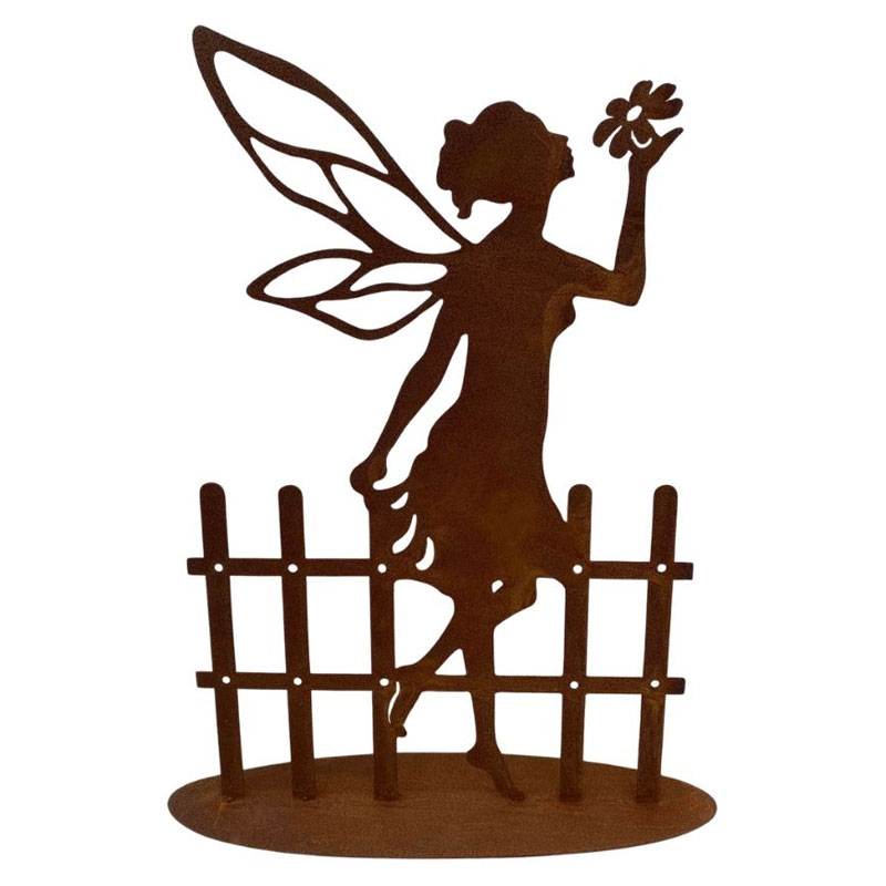 Vacker prydnad från Lind Decoration i form av en älva som står vid ett staket.