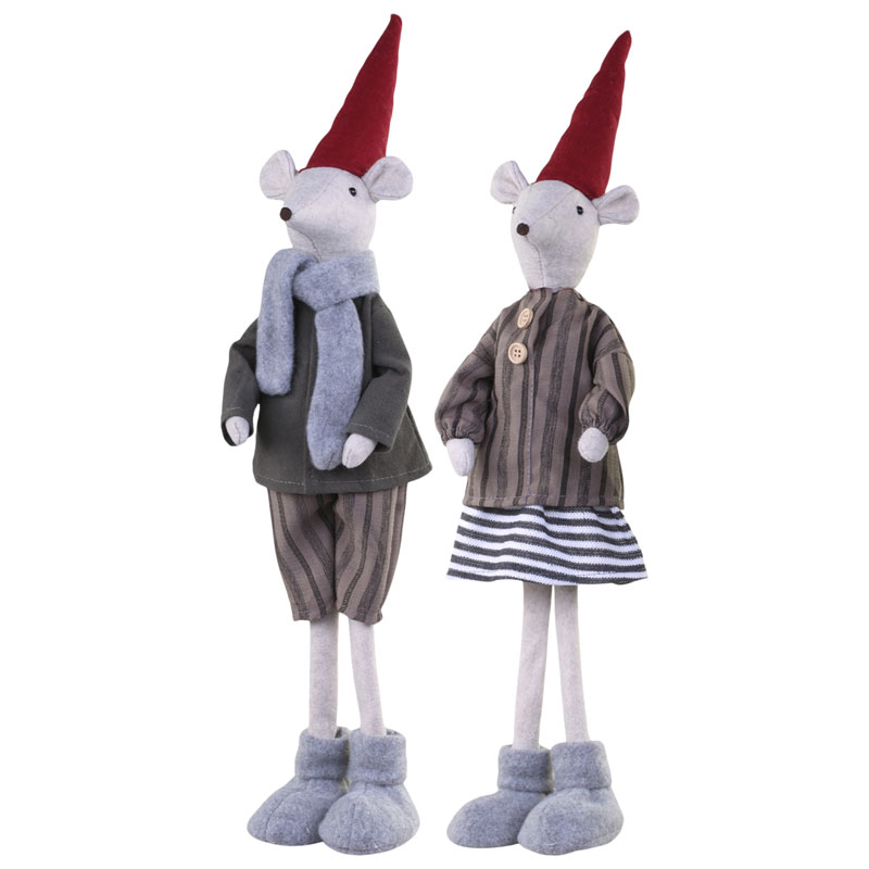 Bedårande 2-set julmusar från Chic Antique, iklädda randiga klädesplagg i jordnära nyanser.