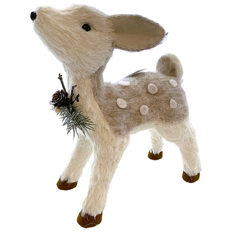 Söt juldekoration från Dynäs i motiv av en söt hjort som står upp med nosen upp i vädret.