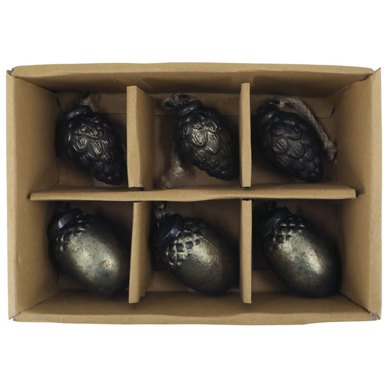 Ljuvligt 6-set med julkulor från Chic Antique, formade som kottar.